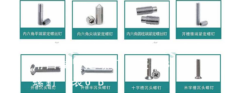 不銹鋼螺絲產品主要有:外六角螺栓、圓柱頭內六角螺釘(杯頭)、內六角凹端緊定螺釘(凹端機米)、內六角平端緊定螺釘(平端機米)、內六角尖端緊定螺釘(尖端機米)、內六角柱端緊定螺釘(柱端機米)、沉頭內六角螺釘(平杯) ⑤螺柱類:雙頭螺栓、等長雙頭螺柱(A型B型)、特長雙頭(銅、鐵、鋁、不銹鋼)⑥、緊定螺釘類:內六角平端緊定螺絲、內六角尖端緊定螺絲、內六角凹端緊定螺絲、⑦、銷類:開口銷、圓柱銷、圓椎銷、彈性圓柱銷、銷軸、