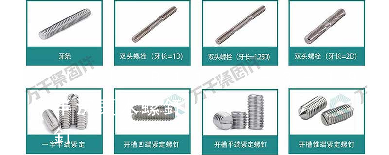 1.開槽螺釘2.十字槽螺釘3.內六角螺釘4.內六角花形半沉頭螺釘5.內六角花形盤頭螺釘6.內六角花形圓柱頭螺釘7.內六角沉頭螺釘8.內六角圓柱頭頭螺釘9.內六角平圓頭螺釘10.十字頭螺釘2.4.3 緊定螺釘1.開槽錐端緊定螺釘2.開槽平端 十字槽沉頭螺釘也屬于精密螺絲,一般市場上常用的都是比較小的規格型號尺寸。沉頭螺釘規格為M2,M3,M4,M5,M6,M8。這個指的是沉頭螺釘的直徑大小。沉頭螺釘長度有4,5,6,8,10,12,14,16,20,25,30,35,4